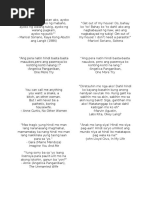 Sa mahal lang kita kukunin ko ang mga agiw sa yong mga lumang gunita pilit kong wasakin ang mga pader. -Beverly Cumla Ang hirap mainlove sa tropa yung tipong di mo inaasahan pero nahulog ka na pala ang lalim ng bangin hindi na mahukay natabunan ng masayang alaala kung saan mahal na kita pero shet ayokong mapahiya ayokong sabihin mong sinamantala ko ang pagkakaibigan nating dalawa ang hirap. MAHAL PA KITA PERO TAMA NA Kay.